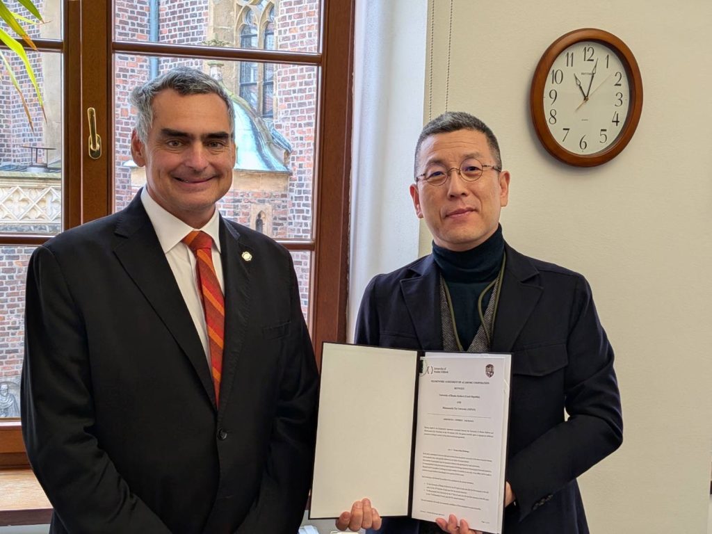 2025年10月7日,下关市立大学与弗拉德茨克拉洛维大学(University of Hradec Králové)签署了学生与研究交流协议。本次访问是继同年7月在大阪世博会捷克馆举办的“EDU Day”的MoU签字仪式之后的再次访问。签字仪式在和谐、充满期待的气氛中举行,为学术、文化两方面的新合作关系奠定了基础。